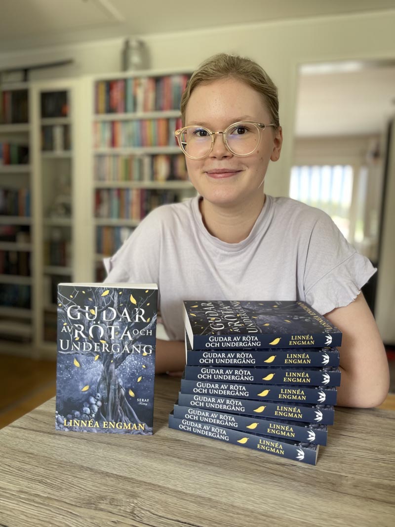 Linnéa Engman debuterade som 20-åring med "Gudar av röta och undergång". En fantasy romance med hetta, inspirerad av nordisk mytologi.