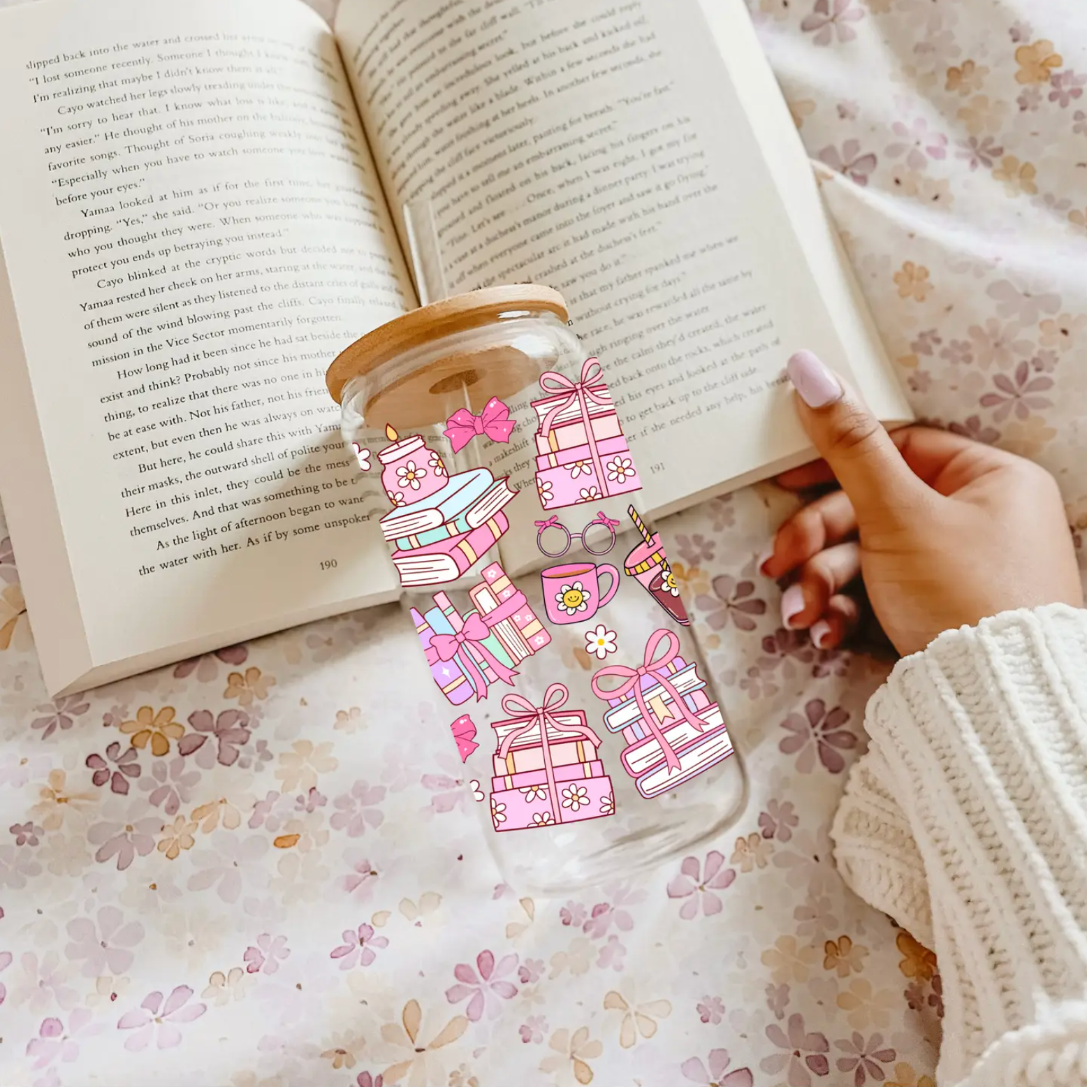 Underbara bokliga glas som verkligen förhöjer lässtämningen. Bambulock och sugrör medföljer.