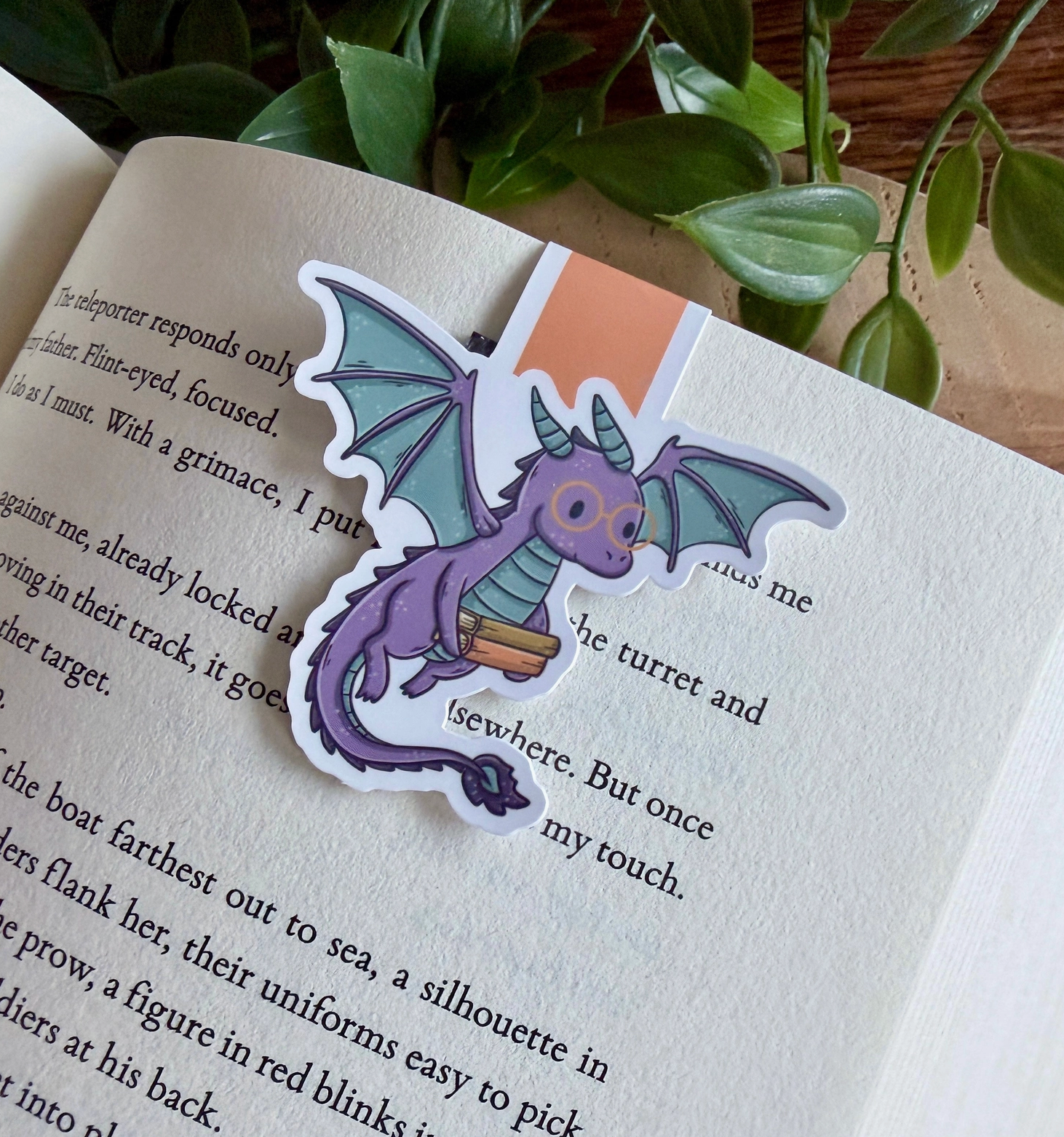 Magnetiskt bokmärke - Drake med böcker